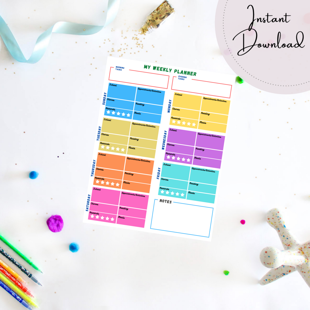 Kids Chore Chart, Reward Chart, & Weekly Schedule Planner